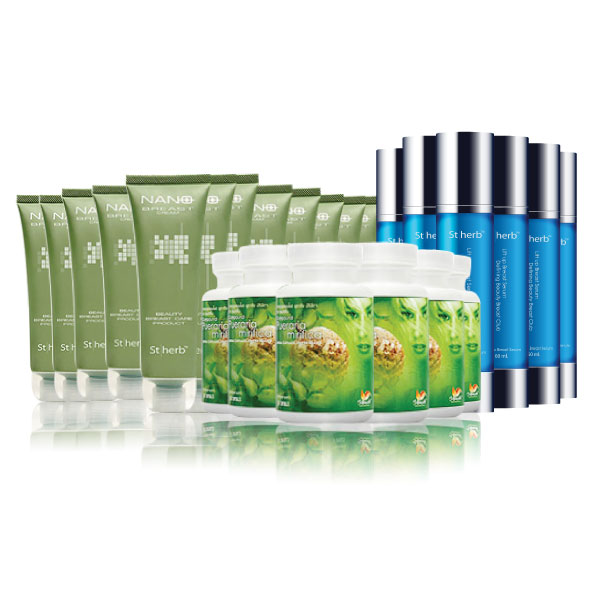 This long-term supplement and topical bundle is marketed for bust enhancement and shape correction. It includes massage cream, capsules, and a detailed regimen.